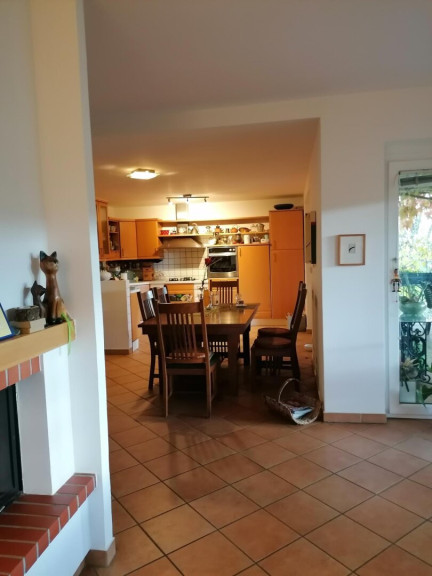 Für zusätzlichen Komfort sorgt die moderne Fußbodenheizung. Ein Kamin schafft eine wohlige Atmosphäre in den kühleren Monaten und macht Ihr Zuhause zu einem echten Wohlfühlort. Die Einbauküche ist nicht nur funktional, sondern auch stilvoll gestaltet und bietet genügend Platz für kulinarische Abenteuer.