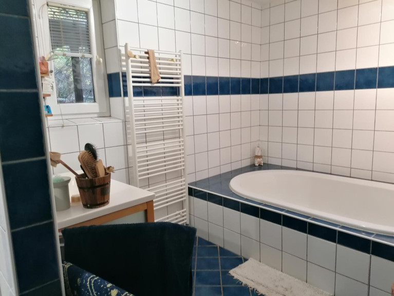 Das Haus verfügt über zwei WCs und zwei Badezimmer, die mit einer Badewanne sowie einer Dusche ausgestattet sind – Ideal für Familien oder Gäste. Für die Annehmlichkeiten des täglichen Lebens stehen Ihnen zwei Garagen sowie ca. vier Stellplätze zur Verfügung.