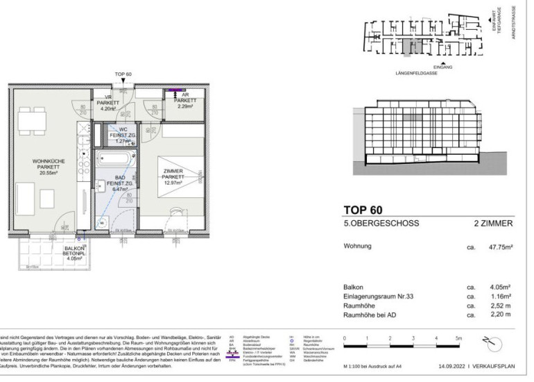 Wohnungsbeschreibung Top 60 im 5. Liftstock mit 47,75 m2 Wohnfläche + Balkon: