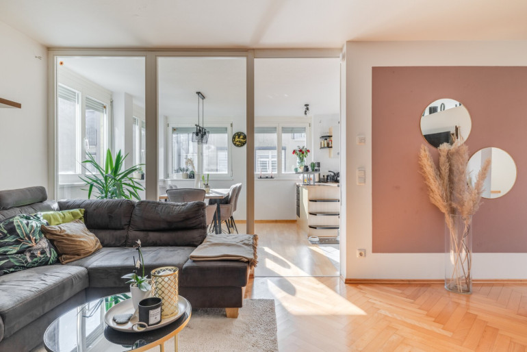 Die Wohnung besticht durch ihre durchdachte Raumaufteilung und helle, freundliche Atmosphäre. Große Fenster lassen viel Tageslicht herein und schaffen eine einladende Umgebung, in der Sie sich sofort wohlfühlen werden. Die Küche ist der perfekte Ort, um kulinarische Köstlichkeiten zu zaubern, während der Wohnbereich zum Entspannen und Verweilen einlädt.