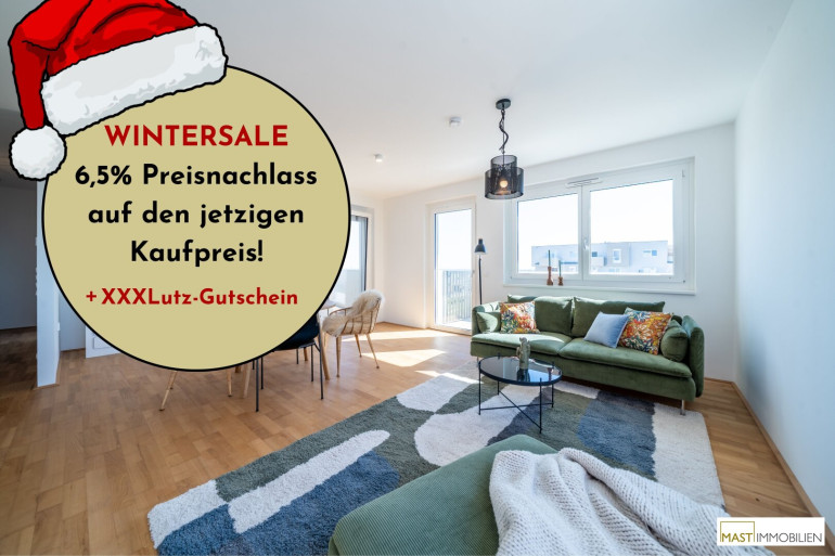 In der kalten Jahreszeit lassen wir die Preise schmelzen: Beim Kauf einer Eigentumswohnung in einem unserer Objekte in der Berresgasse ersparst du dir bis 31.3.2026 die Nebenkosten* und bekommst so jede Wohnung um 6,5% günstiger.