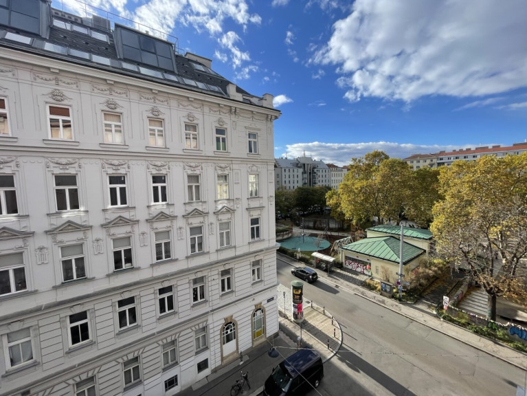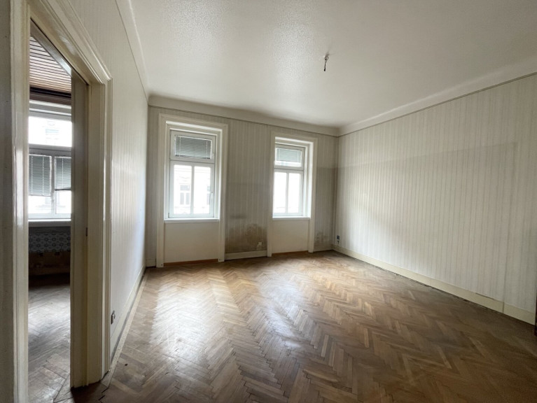 Die sanierungsbedürftige Wohnung ist straßenseitig und hofseitig (in den Innenhof) orientiert. Sie liegt im 4. Obergeschoß mit Lift und ist dadurch sehr hell und freundlich.