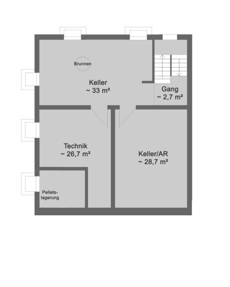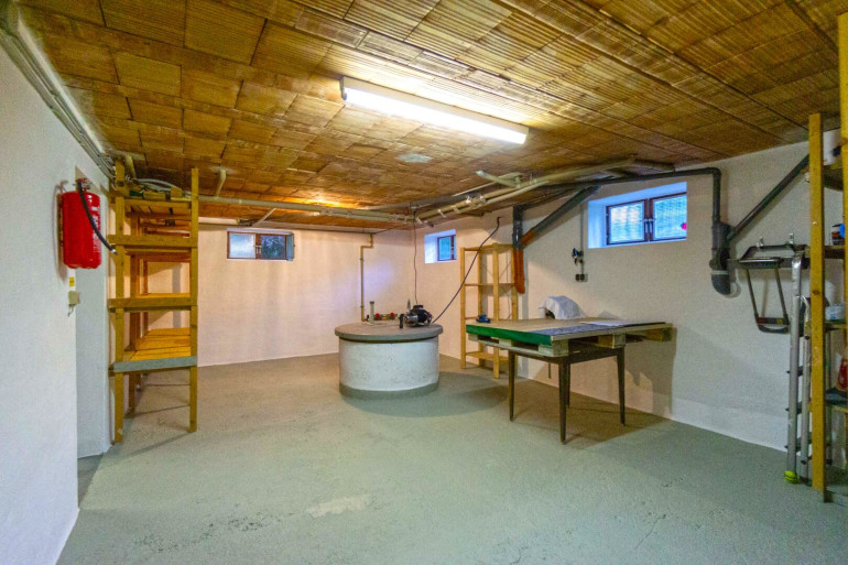 Im trockenen Vollkeller gibt es viel Stauraum, die Brunnenanlage zur hauseigenen Gartenbewässerung sowie die neuwertige Pelletsheizung mit Lagerraum und die Haustechnik sind untergebracht.