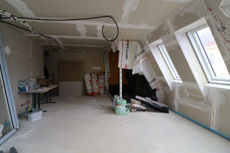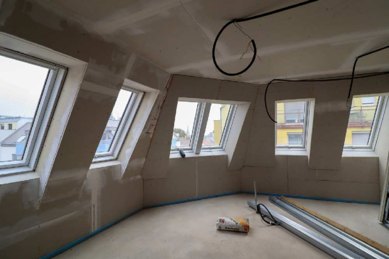 Im neu ausgebauten Dachgeschoss befinden sich insgesamt 6 exklusive Wohnungen, davon 3 stilvolle Maisonettwohnungen. Besonders hervorzuheben ist die Top 23, die mit einer großzügigen Dachterrasse und einem atemberaubenden 360-Grad-Blick über Wien beeindruckt – ein einzigartiges Wohngefühl hoch über den Dächern der Stadt.