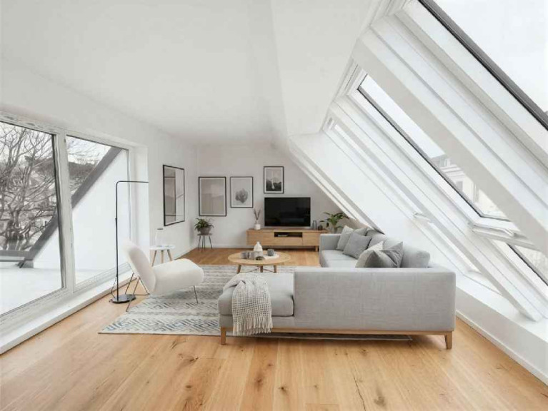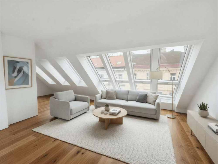 Im neu ausgebauten Dachgeschoss befinden sich insgesamt 6 exklusive Wohnungen, davon 3 stilvolle Maisonettwohnungen. Besonders hervorzuheben ist die Top 23, die mit einer großzügigen Dachterrasse und einem atemberaubenden 360-Grad-Blick über Wien beeindruckt – ein einzigartiges Wohngefühl hoch über den Dächern der Stadt.