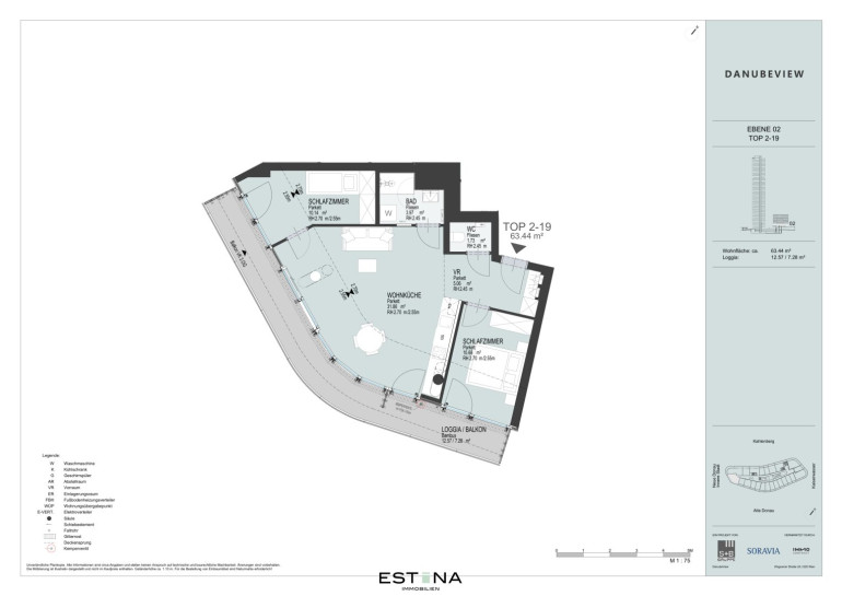DANUBEVIEW bietet insgesamt 159 Mietwohnungen mit Flächen von 30 m² bis 150 m² und 1 bis 4 Zimmer. Die Grundrisse der Wohnungen gestalten sich offen und lichtdurchflutet. Mit großzügigen Fensterfronten schaffen diese ein freies Raumgefühl mit herrlichem Ausblick auf die Neue Donau und die Wiener Innenstadt. Durchdachte Außenplätze mit einem ansprechenden Landschaftsdesign verbinden sich zum persönliche "art of living" Lebensmittelpunkt. Zusätzlich lassen sich private Arbeitsplätze im Haus anmieten.