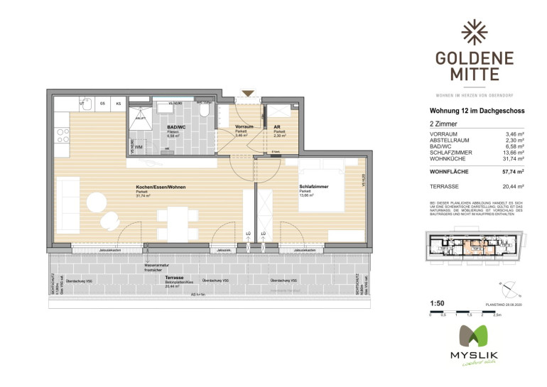 2-Zi-Dachgeschosswohnung mit SW-Terrasse und 2 Tiefgaragenplätze