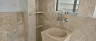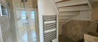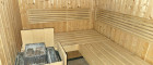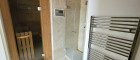 Badezimmer 2, ca 4,15 m², mit Glasdusche und anschließender Sauna, ca 3,30 m²