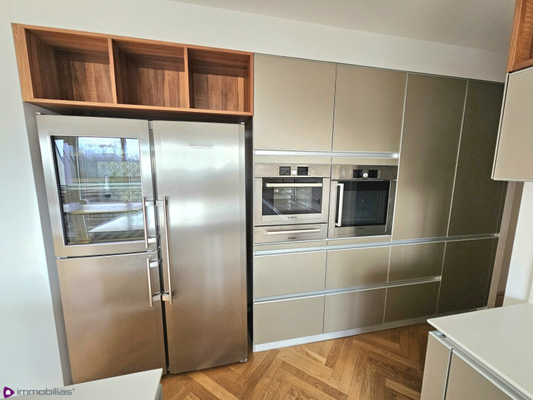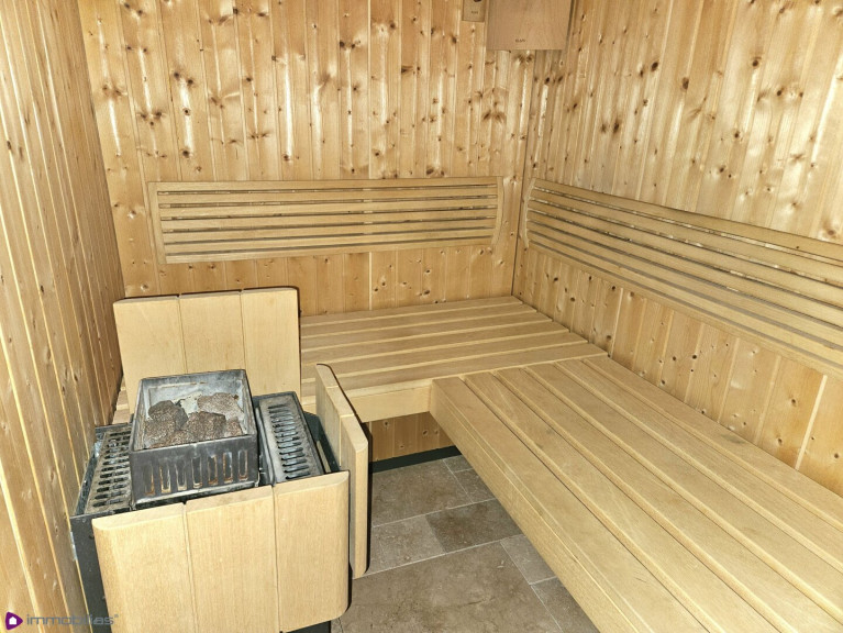Parkett, Fliesen, Gas, Fußbodenheizung, Kamin, Zentralheizung, Wohnküche / offene Küche, Südbalkon, Badewanne, Dusche, Kabel/Satelliten-TV, Sauna, Wasch/Trockenraum