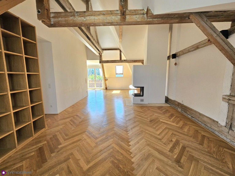 Die gegenständliche XXL Terrassenwohnung erstreckt sich über zwei Wohnebenen (Maisonette) und befindet sich im 2. Stock (kein Lift vorhanden, nicht barrierefrei) eines sehr gepflegten Stilhauses mit denkmalgeschützter Fassade aus 1900. Die Liegenschaft besteht aus nur 5 Wohnungen. Das Gebäude wurde 2012 generalsaniert und zeitgleich das Dachgeschoss ausgebaut- es entstand dieses exklusive Objekt, welches sich über das gesamte Dachgeschoss erstreckt. .