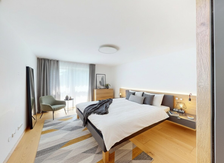 Die knapp 77m² Wohnfläche teilen sich auf in einen geräumigen Vorraum mit Staumöglichkeiten, einen Wohnraum mit 28,46m² mit Ausgang zur ca. 11m² großen Terrasse, ein ca. 12m² großes Schlafzimmer mit seitlichem Zugang zur Terrasse, ein zweites Zimmer mit knapp 15m², das auch ein wunderbares Home-Office oder Kinderzimmer abgeben würde, ein ca. 8m² großes Bad mit Wanne UND Dusche, ein getrenntes WC und einen Abstellraum.