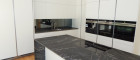 Großes Wohnzimmer mit offener Küche mit Zugängen zur Terrasse, Grünfläche und Pool (650 x 400) - WC mit Handwaschbecken - Abstellraum/Speis - Liftstation