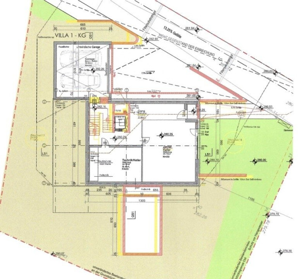 Eingangsbereich - großer Raum mit Zugang zur Grünfläche - Technikraum - Zugang zur Doppelgarage (36 m²) - Liftstation