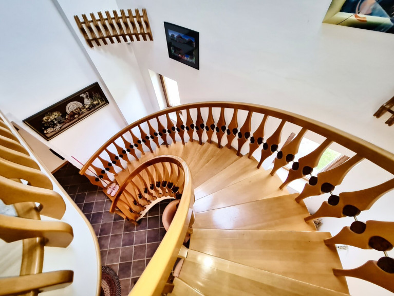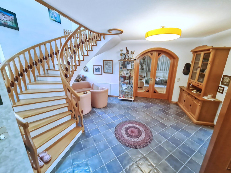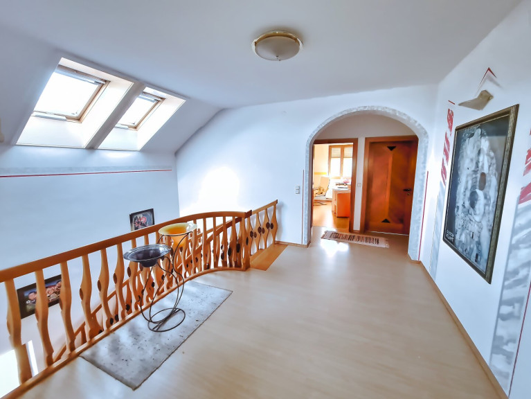 Das charmante Anwesen besticht durch einen offenen Stiegenaufgang, der die verschiedenen Räume elegant miteinander verbindet. Das gesamte Gebäude ist voll unterkellert, wobei ein Teil des Kellers als Wellnessbereich mit Sauna und Dusche ausgebaut wurde. Hier können Sie entspannen und nach einem langen Tag zur Ruhe kommen. Heuer wurde das Untergeschoß neu ausgemalen und neue Türen eingebaut.
