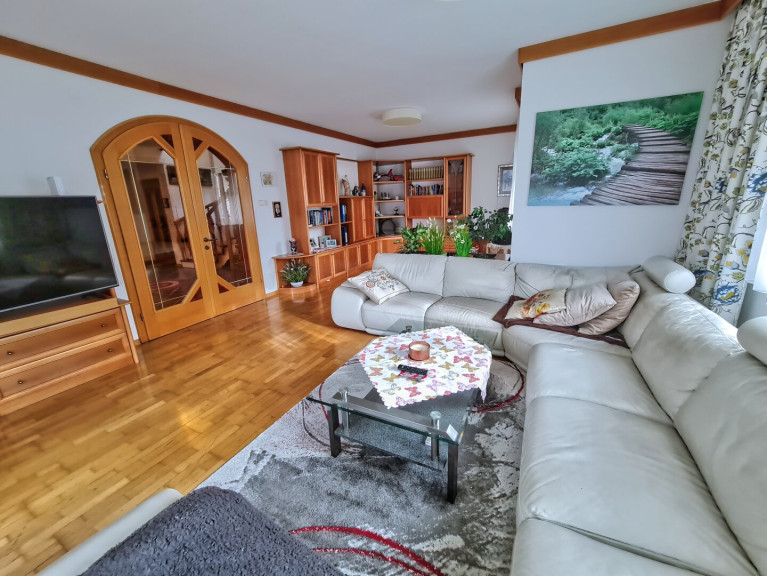 Parkett, Estrichboden, Fliesen, Öl, Fußbodenheizung, Zentralheizung, Einbauküche, Westbalkon, Bad mit Fenster, Badewanne, Dusche, Parkplatz, Garage, Sauna, Wasch/Trockenraum