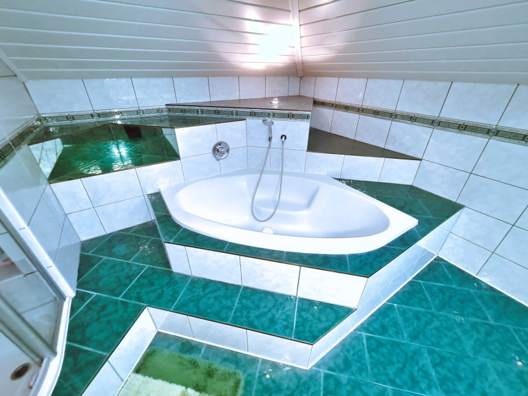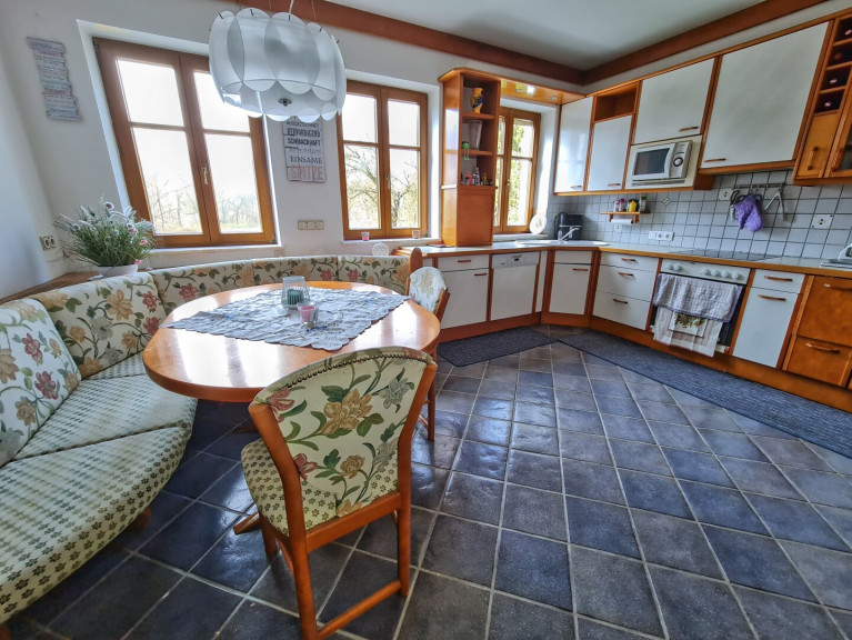 Die im Objekt enthaltene Einbauküche und die stilvolle Badeinrichtung machen das Wohnen in diesem Haus besonders komfortabel. Grundsätzlich könnte das gesamte Mobiliar übernommen werden. Für Ihre Fahrzeuge stehen Ihnen neben mehreren Abstellplätzen auch eine praktische Doppelgarage zur Verfügung.