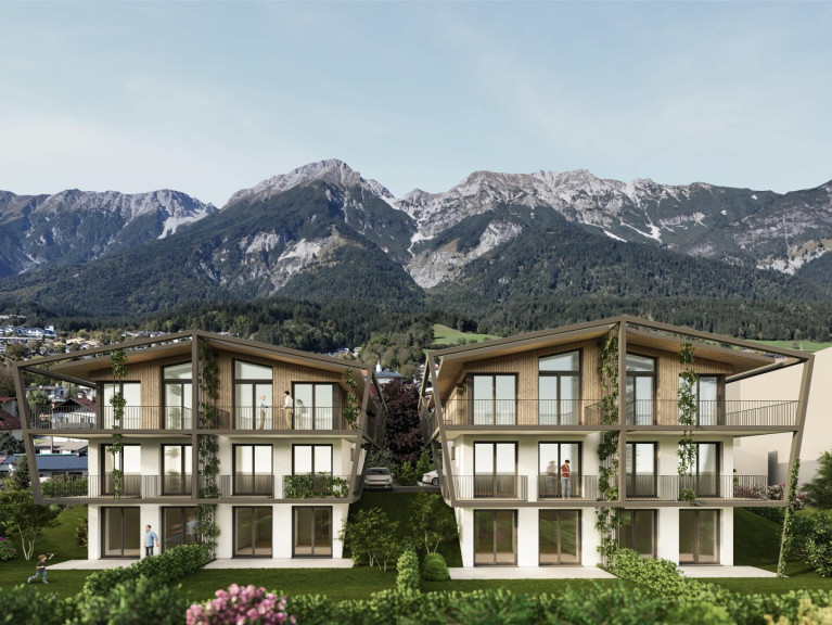 Vier Einheiten mit Privatgärten präsentieren sich in ruhiger Gegend mit beeindruckendem Ausblick über das Inntal.