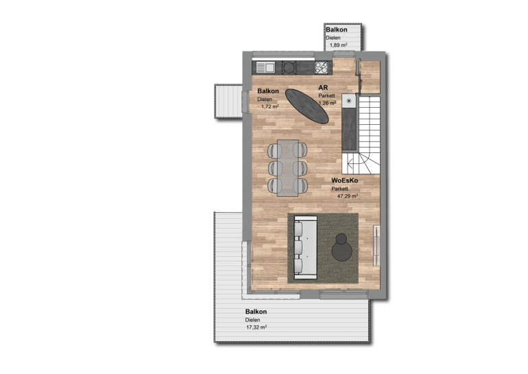 Die präferierte Süd- Westausrichtung garantiert zahlreiche Sonnenstunden bis in den Abend.