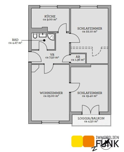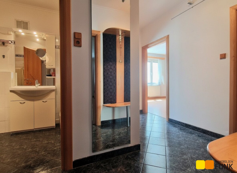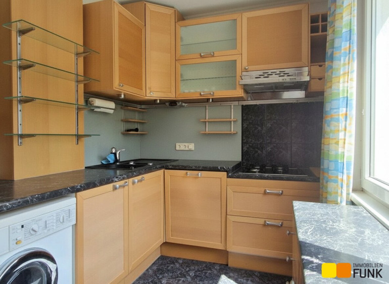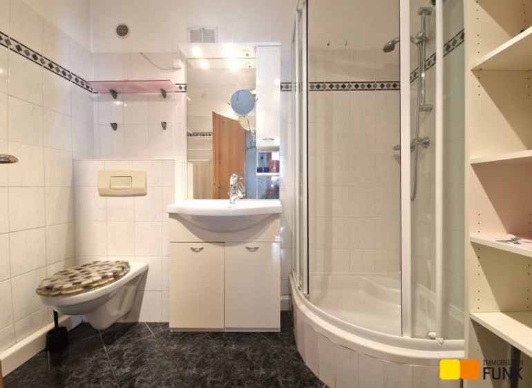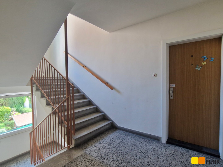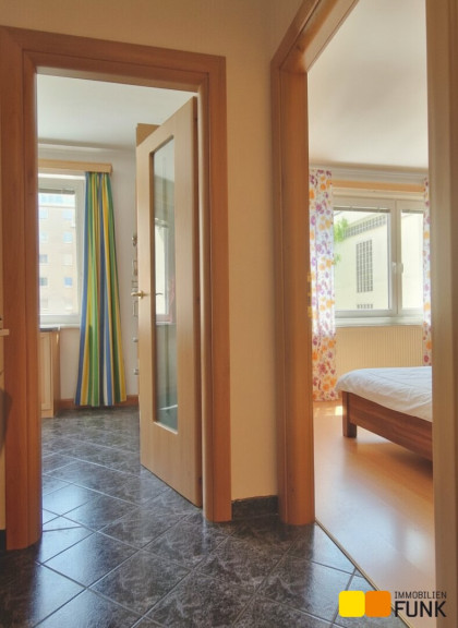 Die Wohnung befindet sich im 2. Liftstock eines im Jahre 1965 errichteten Wohnhauses und bietet Ihnen eine Wohnfläche von ca. 92,24 m². Sie betreten die Wohnung in einem ca. 7,5 m² großen Vorraum mit dunklen Bodenfliesen und der Garderobe. Geradeaus sorgt ein ca. 1,36 m² großer Abstellraum für zusätzlichen Stauraum. Linker Hand haben Sie Zugang zum ca. 4,27 m² großen Badezimmer mit WC, Eckdusche und Waschtisch. Das Badezimmer ist mit hellen Wand- und dunklen Bodenfliesen belegt. Über den Vorraum kommen Sie zur ca. 9 m² großen Küche mit Fenster und Ausblick ins Grüne. Die Küche ist komplett mit Markeneinbauküche, Miele Waschmaschine und Elektrogeräten ausgestattet. Neben der Küche betreten Sie das etwa 22,1 m² große Schlafzimmer mit großem Einbauschrank, begehbarer Garderobe und Fenster zum ruhigen Innenhof. Vom Vorraum aus rechts befindet sich das etwa 23 m² große Wohnzimmer und das zweite, ca. 19,4 m² große Schlafzimmer mit sonniger Loggia/Balkon Richtung Westen. Die gesamte Wohnung ist mit Holztürstöcken und ansprechenden Innentüren ausgestattet. Geheizt wird mittels Gasetagenheizung. Ein ca. 3 m² großes Kellerabteil ist der Wohnung zugeordnet.