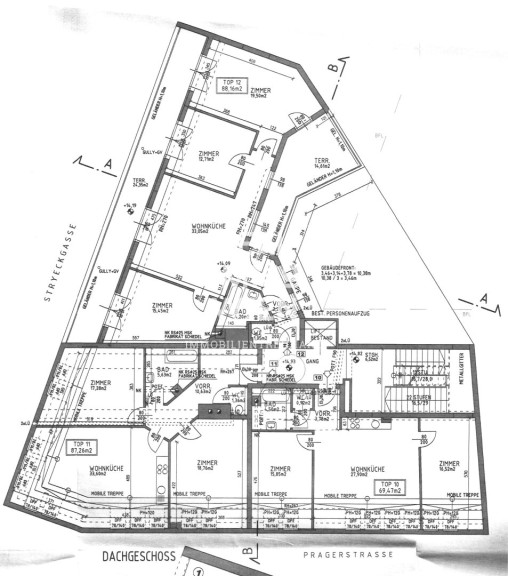 Parkett, Fliesen, Gas, Etagenheizung, Wohnküche / offene Küche, Personenaufzug, Dusche