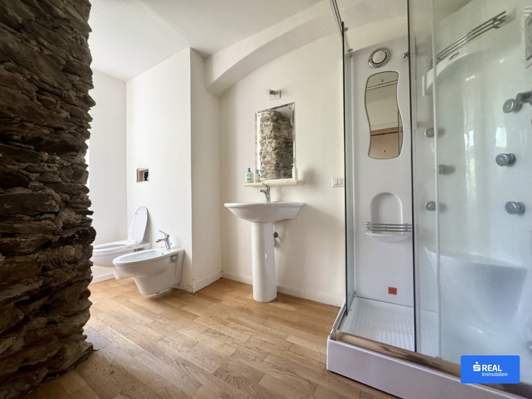 Seine imposante Erscheinung, die massiven Mauern und die geschmackvollen Renovierungen schaffen ein Ambiente, das gleichermaßen Geborgenheit wie Eleganz vermittelt. Noch nicht fertiggestellte Bereiche lassen Raum für individuelle Gestaltung und ermöglichen es neuen Eigentümern, ihre ganz persönlichen Vorstellungen zu verwirklichen.