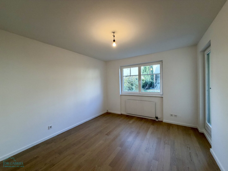 ERDGESCHOSS: Windfang, Vorraum, Wohn-Esszimmer (durch Kaminwand getrennt) mit Ausgang auf eine große südseitige Terrasse und Garten; Küche, Abstellraum, ein Schlafzimmer, Bad, Gäste-WC
