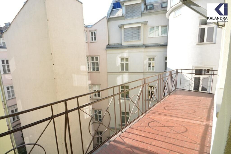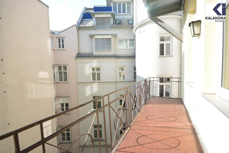 großer Vorraum, Ausgang auf einen West- Balkon mit Hofblick, großes südseitiges Wohnzimmer, Eßzimmer, Küche,