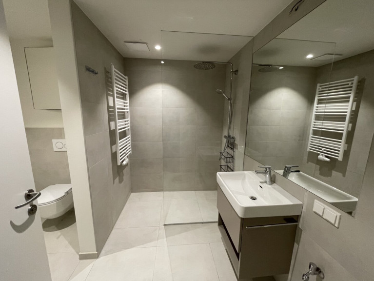 So findet man Echtholzparkett, Fußbodenheizung, Deckenkühlung, Sicherheitstüren sowie eine neue moderne Küche und angenehme Farben im Bad.