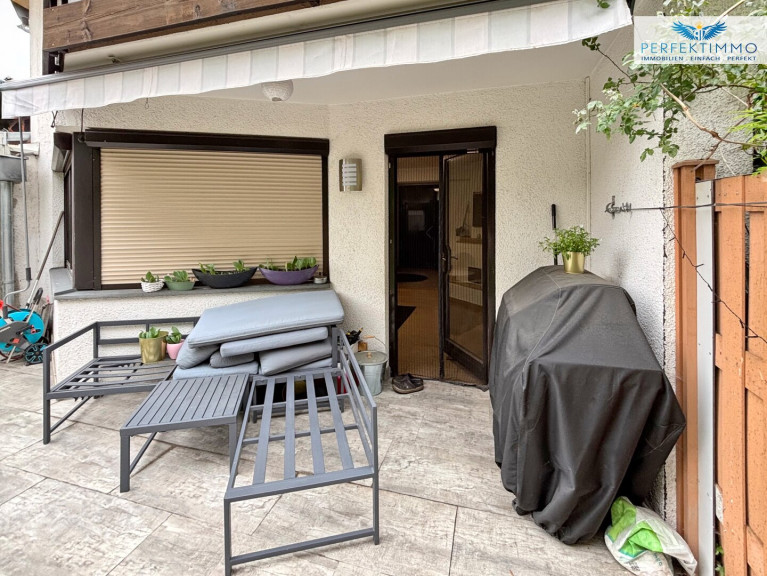 Besonders hervorzuheben sind die nach Südwesten ausgerichtete Terrasse und der Balkon, die sonnige Nachmittage im Freien ermöglichen. Die private Gartenfläche mit ca. 116 m² bietet ausreichend Platz zum Spielen, Entspannen und Gärtnern. Das Haus ist voll unterkellert und verfügt über eine Garage sowie einen zusätzlichen Abstellplatz im Freien.