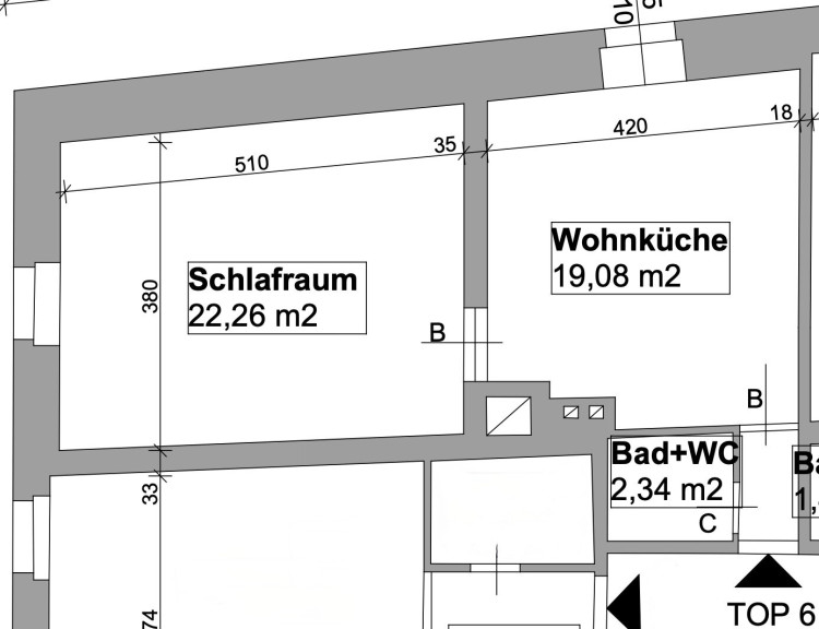 Zum Verkauf steht eine renovierungsbedürftige Wohnung in zentraler Lage von Lambach. Die Raumaufteilung umfasst einen Vorraum, ein Bad mit WC, eine Wohn-/Essküche sowie ein Schlafzimmer.