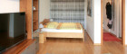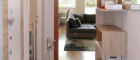 Auch offen der Schlafbereich, eine Nische, ganz leicht zu trennen vom Wohnbereich – aber es hat schon was Besonderes, diese Großzügigkeit des Raumes. Dahinter gut versteckt eine praktische Schrankwand, verbirgt Ihre gesamte Garderobe.
