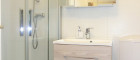 Das Badezimmer ebenfalls eine Freude, mit Dusche und WC, Waschmaschine und Trockner. Farblich sehr zart und dezent, vom Zustand her tip top wie der Rest der Wohnung.