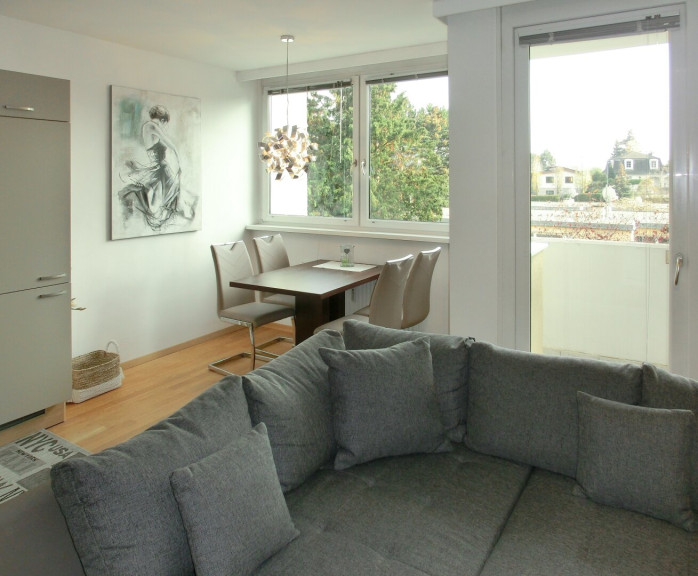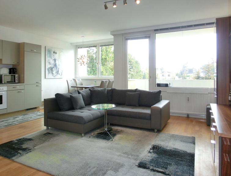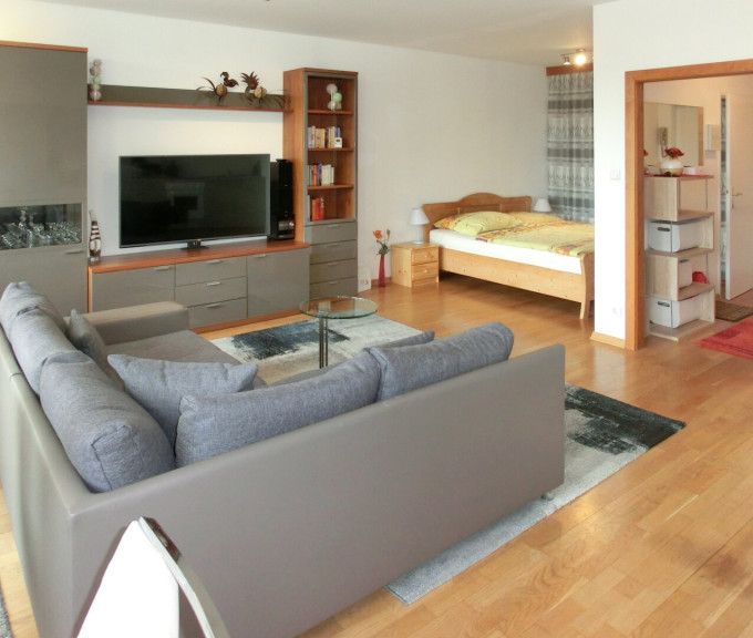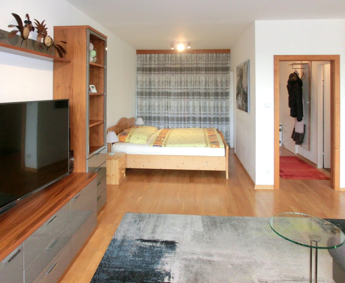 Eine bequeme Wohnlandschaft lässt Sie nicht nur in Gedanken versinken, der Fernseher wird zur Nebensache, viel (ent)spannender das Wolkenspiel vor dem Fenster. Die vorgelagerte Loggia lässt nochmals das Herzerl höher schlagen, sitzen Sie doch hier gefühlt alleine ohne nachbarliche Blicke.