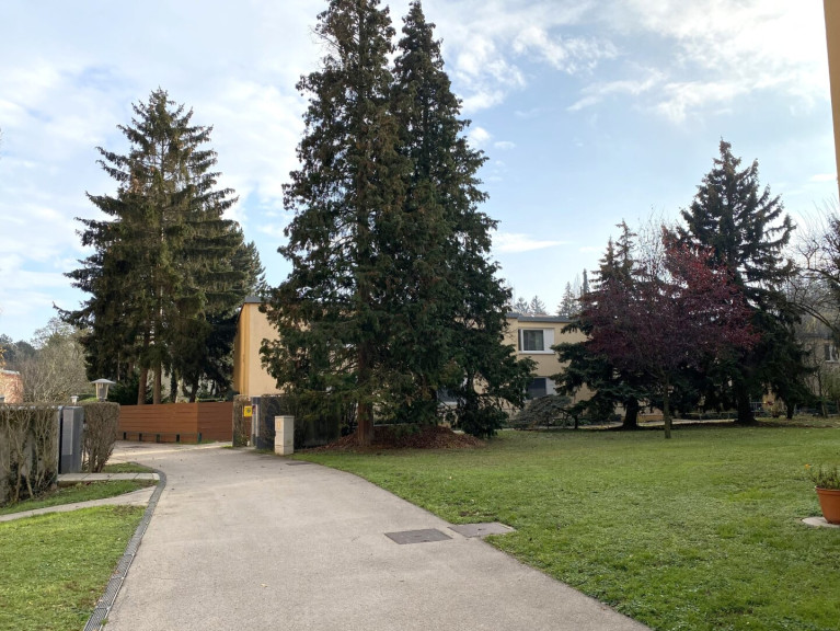 Eingebettet ist das gute Stück in eine Wohnanlage mit vielen Grünflächen, die fast schon wie ein großer Park anmuten. Erbaut in den 70ern, allerdings bereits thermisch saniert und hübsch drapiert, wird man die Umgebung gleich liebgewinnen. Der Vorteil zu vielen anderen Wohnungen hier ist unter anderem die besondere Lage. Nämlich in vorderster Front, kein Vis-a-Vis, den Blick in der Endlosschleife.