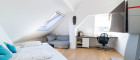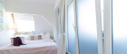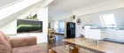 Großzügige Fensterfronten sorgen für viel Tageslicht in allen Räumen. Ein Schlafzimmer bietet ebenfalls Zugang zur Terrasse, während zwei weitere Zimmer mit Dachfenstern und Weitblick punkten.