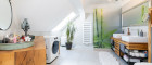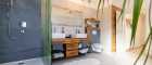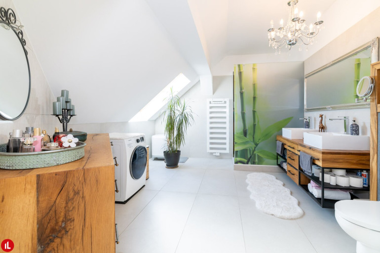 Ein weiteres Highlight ist die 25 m² große Badeoase, ausgestattet mit Walk-in Dusche, Doppelwaschbecken, WC und Handtuchheizkörper – ein luxuriöser Rückzugsort zum Wohlfühlen. Zusätzlich gibt es ein separates Gäste-WC mit Handwaschbecken.