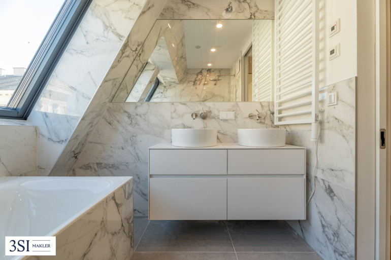 - Badezimmer mit Badewanne, Dusche und zwei Handwaschbecken (ca. 6 m²)