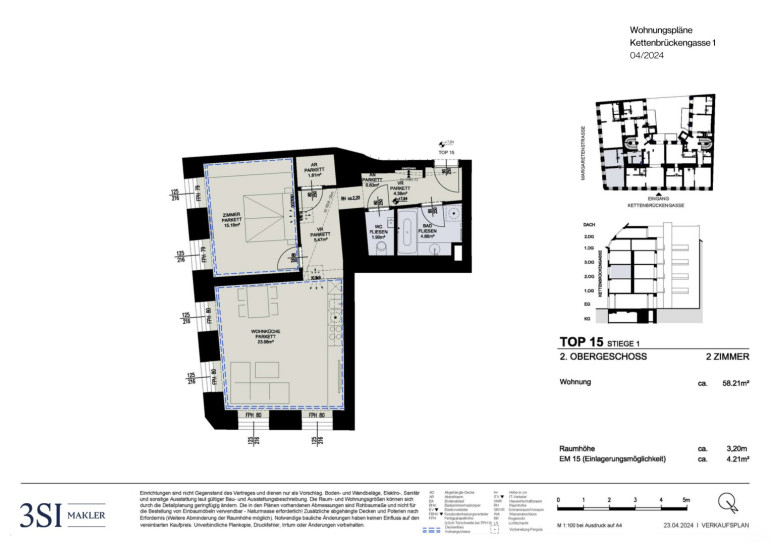 Der guten Ordnung halber halten wir fest, dass, sofern im Angebot nicht anders vermerkt, bei erfolgreichem Abschlussfall eine Provision anfällt, die den in der Immobilienmaklerverordnung BGBI. 262 und 297/1996 festgelegten Sätzen entspricht – das sind 3 % des Kaufpreises zzgl. 20% USt. Diese Provisionspflicht besteht auch dann, wenn Sie die Ihnen überlassenen Informationen an Dritte weitergeben. Letztlich weisen wir darauf hin, dass wir als Doppelmakler tätig sind und ein familiäres/wirtschaftliches Naheverhältnis zwischen der 3SI Makler GmbH und der Verkäuferin besteht.
