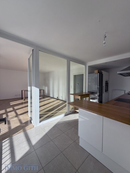 Das Herzstück der Wohnung ist die großzügige Wohnküche, die sich stilvoll zum Wohnzimmer öffnet. Bei Bedarf lässt sie sich durch Glasfronten abtrennen – ideal für flexibles Wohnen. Von hier aus gelangt man auf die ca. 8 m² große Terrasse, die ruhig zum Innenhof ausgerichtet ist – perfekt für entspannte Stunden im Freien.