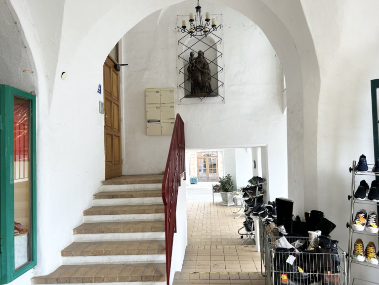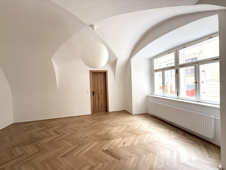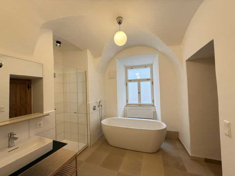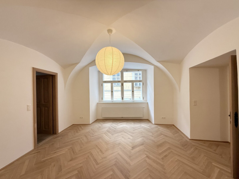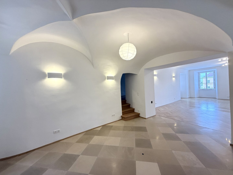Die Wohnung wurde soeben generalsaniert und hochwertig ausgestattet und befindet sich im Hochparterre in einem im 16. Jahrhundert erbauten Palazzo und überzeugt durch seine sensationelle Lage direkt am Hauptplatz.