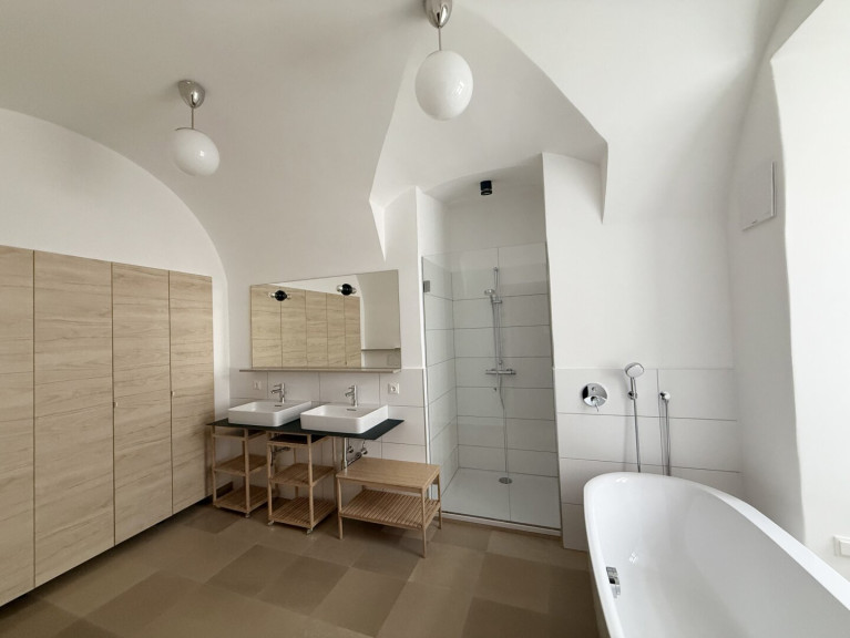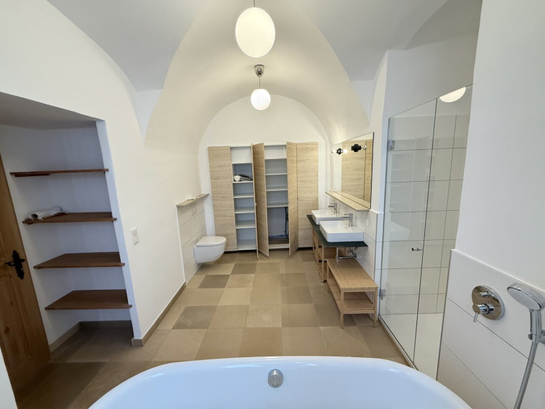 - Bad: freistehende Wanne + Dusche + Doppelwaschtisch + WC (ca. 12 m²)