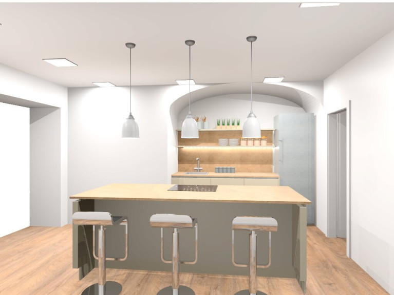 - Solnhofener Naturstein in der Küche und den Sanitärräumen.