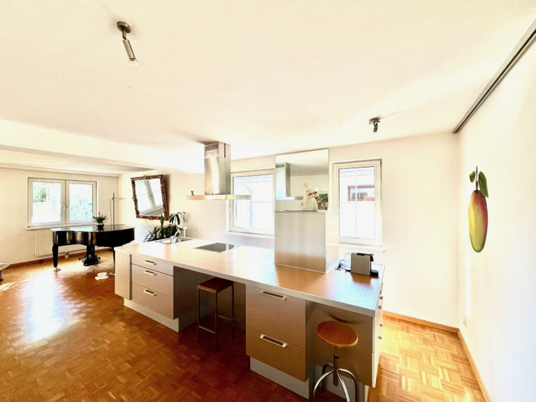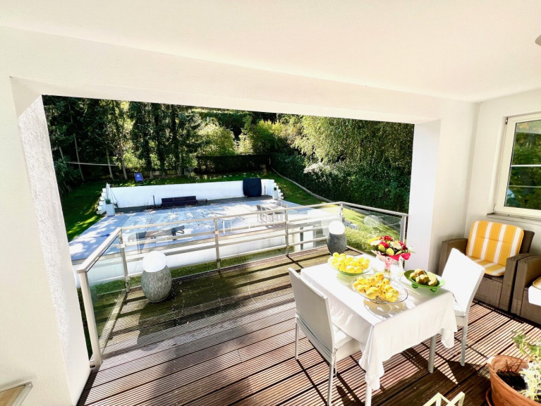 Die ca. 165 m2 große 5 Zimmerwohnung liegt im 2. Liftstock. Der prachtvolle Wohn- & Essraum ist direkt in den schön gestalteten Garten gerichtet. Der überlegte Grundriss garantiert eine optimale Raumausnutzung und bietet Sonnenstrahlen bis zum Sonnenuntergang. Der in den Garten gerichtete Balkon lädt hervorragend zum Entspannen und Verweilen ein.