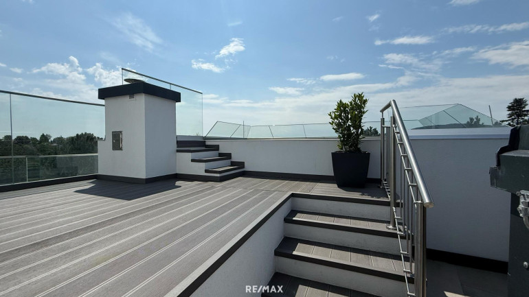 Hier erwartet Sie eine exklusive und außergewöhnliche Immobilie für jegliche Ansprüche, designed mit erstklassiger Ausstattung, die zu Ihrem werthaltigen Investment werden kann. Eine großzügige und offene Bauweise , eine, trotz Dachschrägen, perfekt genutzte Raumaufteilung, ein Fernblick zum Träumen, eine uneinsehbare Dachterrasse mit unendlich viel Platz, 2 Balkone auf direkter Wohnebene, wenn man mal nicht auf die Dachterrasse gehen möchte, Fußbodenheizung, Klimaanlage, elektrische Außenjalousien, und noch einiges mehr, sprechen einfach für sich. Und das alles können Sie auch wirklich genießen, denn das Penthouse ist von absoluter Ruhelage umgeben.