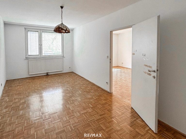 Die Wohnung ist derzeit leerstehend und bietet eine solide Grundlage für eine individuelle Gestaltung. Sie befindet sich in renovierungsbedürftigem Zustand – die Substanz ist gut, jedoch entsprechen Böden, Sanitärräume und Ausstattung nicht mehr dem heutigen Standard.