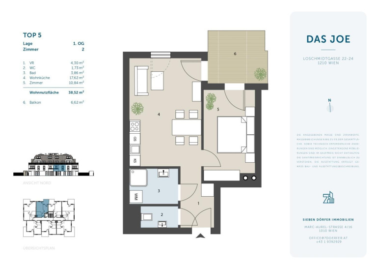 Im Neubauprojekt DAS JOE in 1210 Wien, steht diese optimal geschnittene 2-Zimmer-Wohnung im 1. Obergeschoss zum Verkauf. Die Wohnung bietet auf ca. 38,52 m² Wohnfläche eine effiziente Raumaufteilung mit offener Wohnküche und separatem Schlafzimmer.