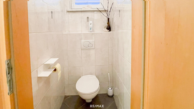 zentraler Vorraum mit Zugang zu Wohnraum und extra Toilette mit Handwaschbecken