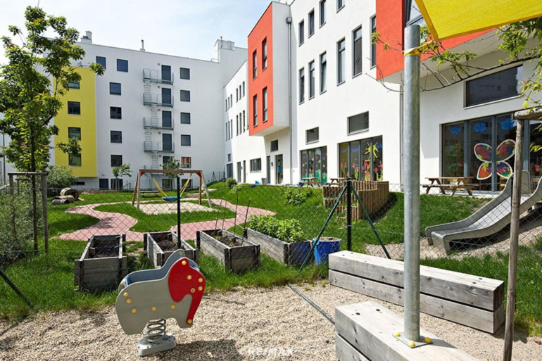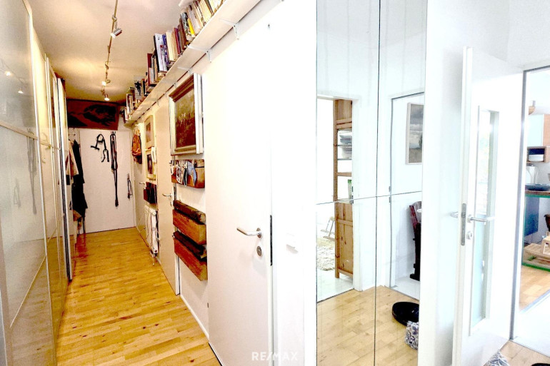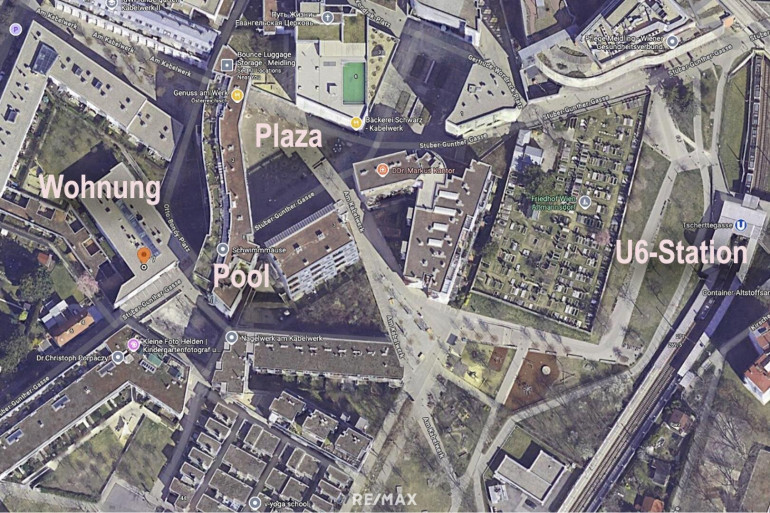 Dieses mehrfach ausgezeichnete Neubauprojekt auf den ehemaligen Gründen der Kabel- und Drahtwerke AG wurde 2006 fertiggestellt. Das „autofreie Dorf“ besticht durch eine Mischung aus attraktiven Wohnungen, Geschäften und Lokalen die alle durch einen abwechslungsreichen Erholungsraum verbunden sind, einfach ideal für das Aufwachsen von Kindern aber auch für Erwachsene die ohne Stress mitten in der Stadt wohnen möchten. Die Wohnung selbst ist nach Süd/West ausgerichtet, sehr hell und von einem Eigengarten mit Baumbestand umgeben. Zu Hause angekommen hat man das Gefühl in einem Eigenheim zu wohnen und nicht in einer Wohnung. Der Grundriss ist gut durchdacht und die Ausstattung zeitgemäß.