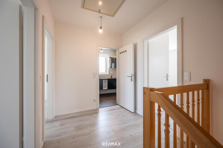 Auf 3 Ebenen (Wohnkeller, EG und OG) verteilen sich ca. 180 m² Wohnfläche und 6 Zimmer, sowie je 2 Bäder und Toiletten. Das Haus wurde vom Eigentümer aufwendig renoviert, eine Markenküche sowie Klimaanlage installiert. Im Erdgeschoss finden Sie im Vorraum die erste (Gäste-) Toilette, und gelange dann ins großzügige Wohnzimmer; weiters findet man links die voll ausgestattete Küche mit Essplatz. Über schöne Vollholzstiegen gelangt man ins Obergeschoss, wo man 3 große Schlafzimmer sowie ein Badezimmer mit Doppelwaschbecken, Badewanne und Dusche vorfindet.