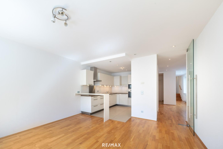 Diese Wohnung im Dachgeschoss eines historischen Palais verbindet funktionale Grundrisse mit zeitgemäßer Ausstattung. Im Zentrum steht die großzügige Wohnküche, die durch ihre offene Gestaltung viel Raum für Wohnen und Essen bietet. Parkettboden, moderne Küche und große Fensterflächen schaffen eine helle, angenehme Atmosphäre.
